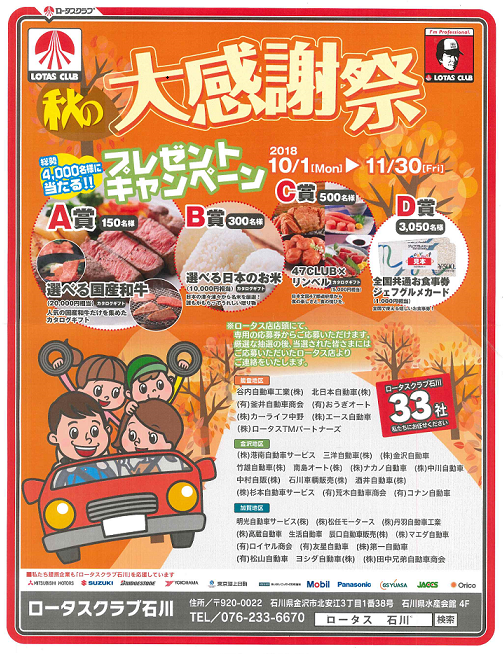 10月1日(月)〜11月30日(金)までロータスクラブ石川秋のキャンペーン開催中