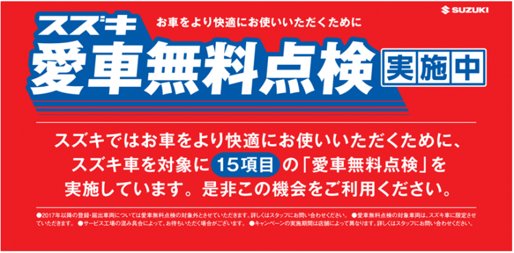 スズキ愛車無料点検にたくさんのご来店、誠にありがとうございます。