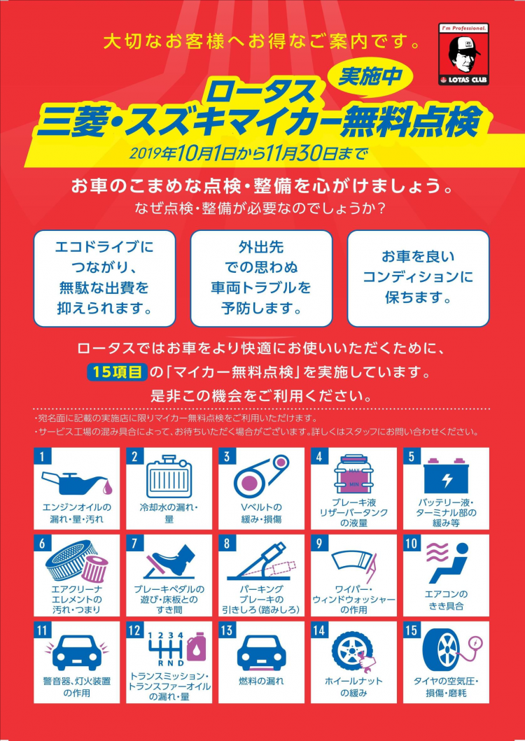ロータスマイカー無料点検にたくさんのご来店、誠にありがとうございます。