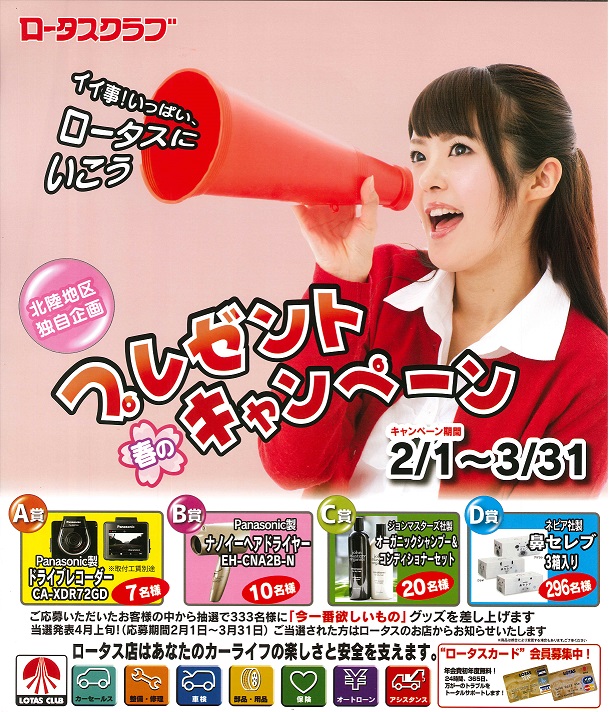 2月1日(土)〜3月31日(火)までロータスクラブ石川春のキャンペーン開催中