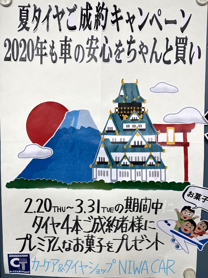 2月20日(木)〜3月31日(火)の期間中にタイヤ4本ご成約頂いた方全員に、プレミアムなお菓子をプレゼント!!